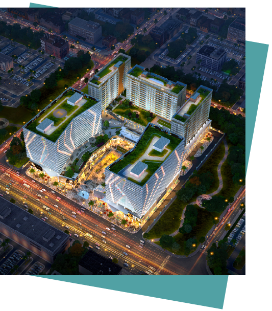 Offering iconic office spaces with cutting edge design, a bustling commercial street filled with retail and dining, and luxurious star residences featuring modern, spacious living—all in one premier destination.